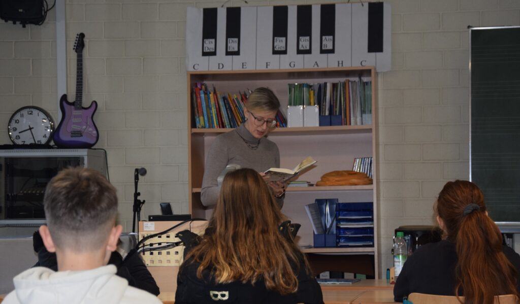 Aus der Schülerschaft las Eva Tolkachev, Klasse 10c, den Schülerinnen und Schülern der Klasse 5c ein Stück aus Michael Endes „Momo“ vor. Die Klasse lauschte Eva sehr aufmerksam. Für die Klasse 5b konnten wir als Vorleserin unsere Oberbürgermeisterin Frau Katrin Albsteiger gewinnen, die ebenfalls aus „Momo“ vorlas. Als Vorsitzender des Elternbeirats übernahm Herr Wölfle das Vorlesen in der Klasse 5a. Herzlichen Dank an alle drei, die die Schülerinnen und Schüler kurz in eine andere Welt entführten und so den Schulalltag belebten.