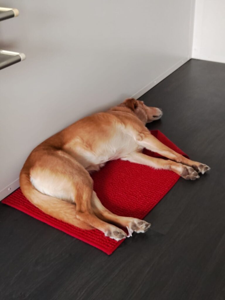 Jede Stunde beginnt mit einer gemeinsamen Begrüßung. Anschließend darf sich Tinka frei im Klassenzimmer bewegen, während der Unterricht ganz regulär stattfindet. Manchmal schlendert sie neugierig durch die Reihen, manchmal sucht sie sich einen gemütlichen Platz und beobachtet ruhig das Geschehen. Allein ihre entspannte Präsenz wirkt sich spürbar auf die Atmosphäre aus.